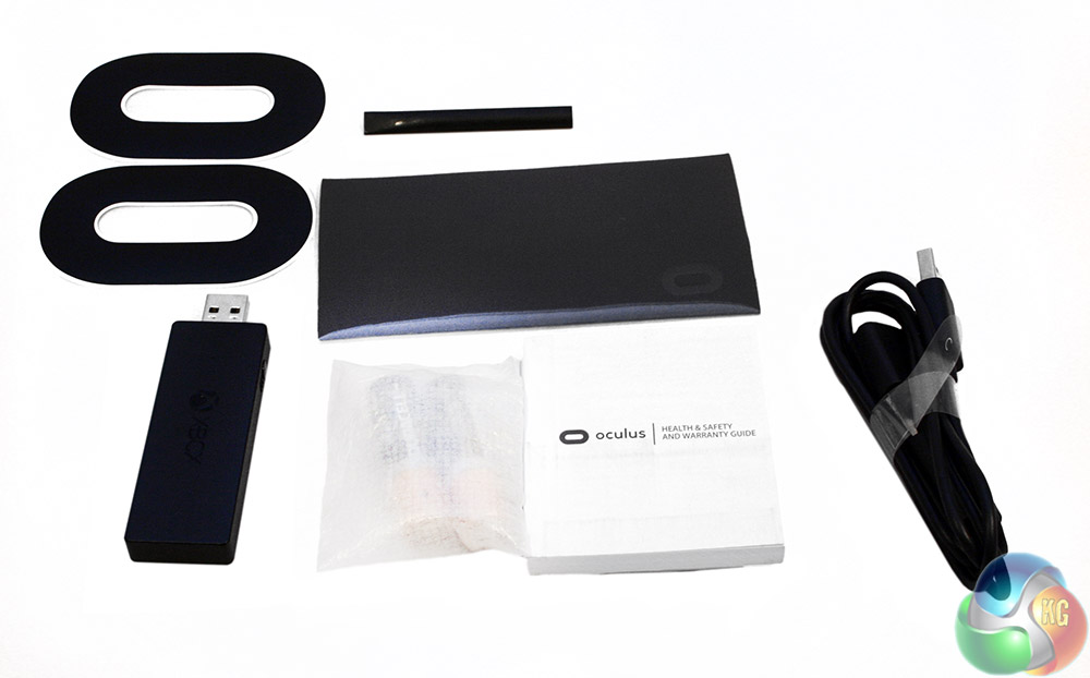 Along with the aforementioned Xbox One accessories, there is also a USB extender, to give your camera some more range if needed, a pair of Oculus stickers, a manual and a micro-fibre cloth. That small bit of plastic that looks like a screwdriver head, is designed as such. It is the “audio tool”, which lets you unscrew the Rift's built-in headphones.