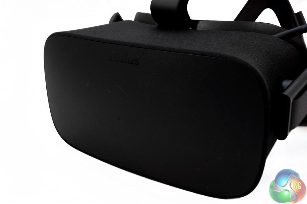 The fabric only runs around the sides, top and bottom of the headset's faceplate though. The front is a matt black plastic, that is very closely matched to the colour grade of the fabric, giving it a very uniform look. There is also a small Oculus logo embossed on the front.