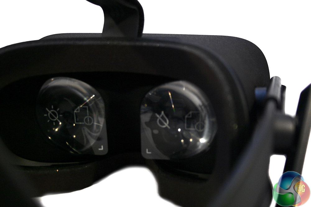 Looking inside, we get our first look at the lenses themselves. They are of an asymmetric design, which is different from the traditional circular lenses of the Rift DK1 and DK2. That is because Oculus created some very bespoke lenses, specifically with VR in mind and that should yield much better quality visuals than previous iterations – even more so than the extra resolution of the new displays allow.