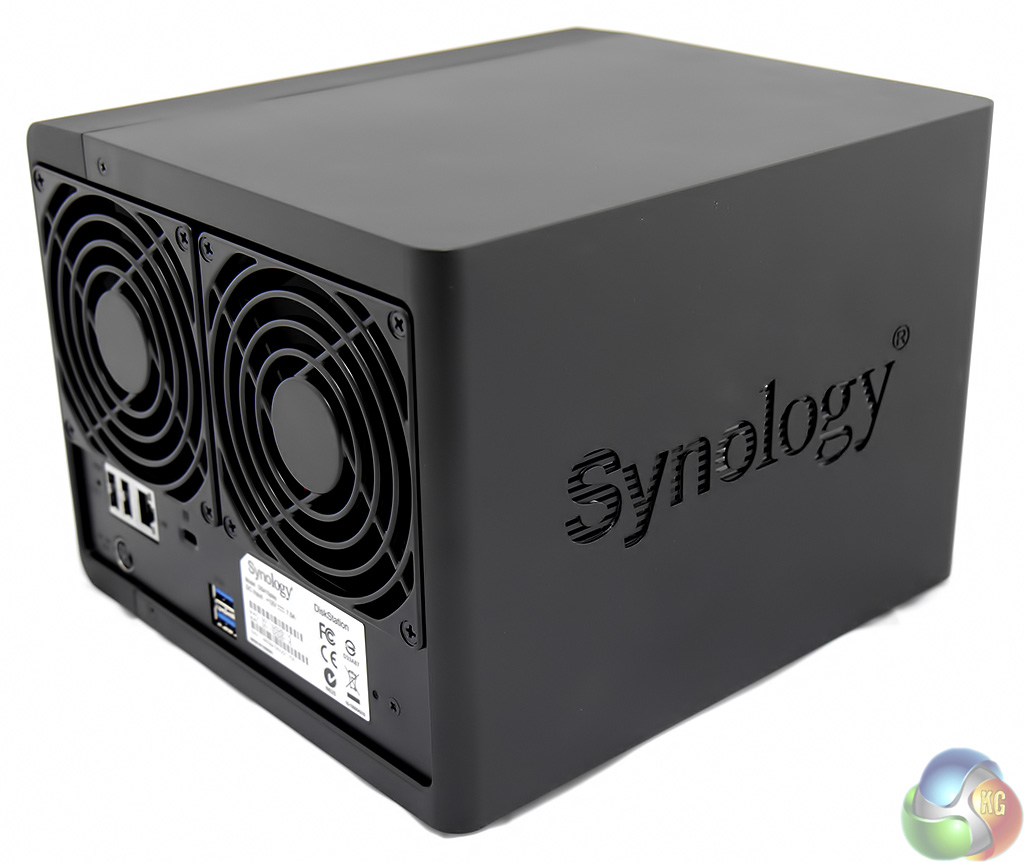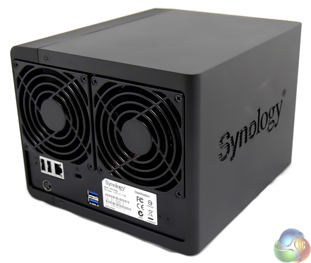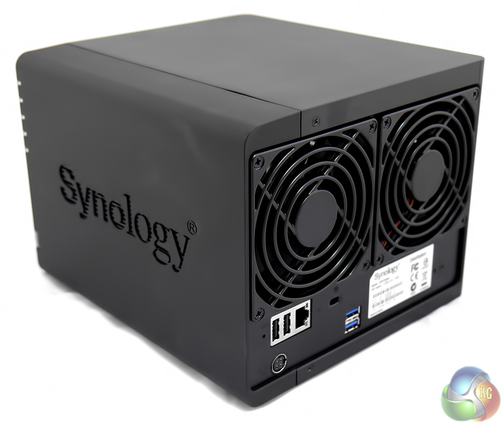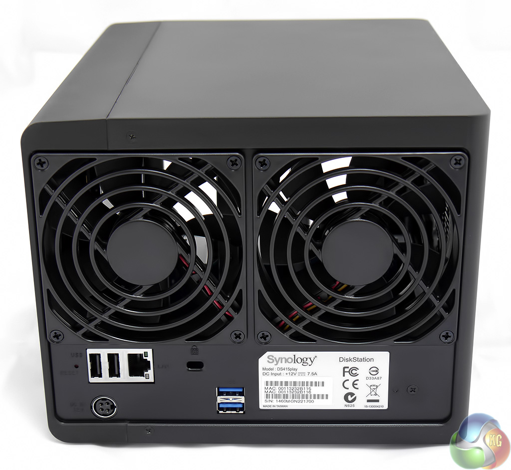 Most of the back of the DS415play is dominated by the pair of 92mm cooling fans.