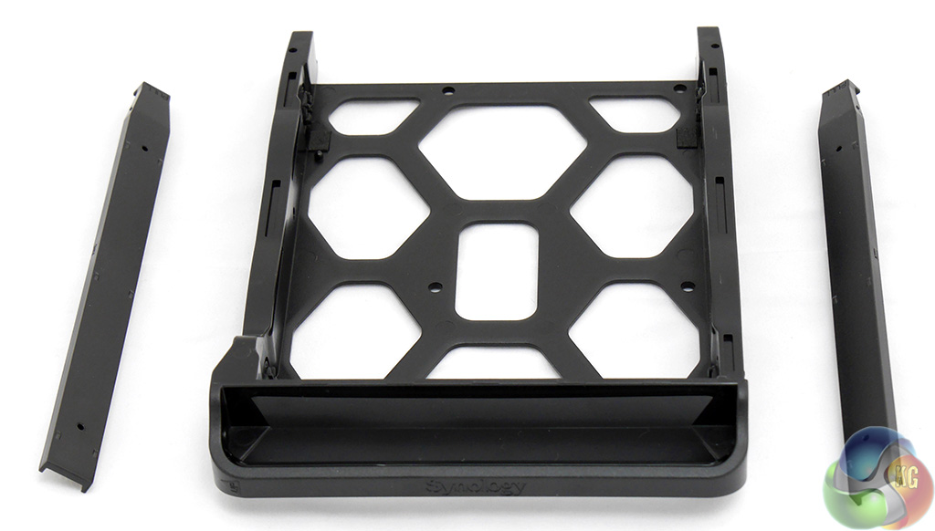 The drive caddies are tool-free. Simply unclip the side rails, sit the drive in place and clip the sides back on.
