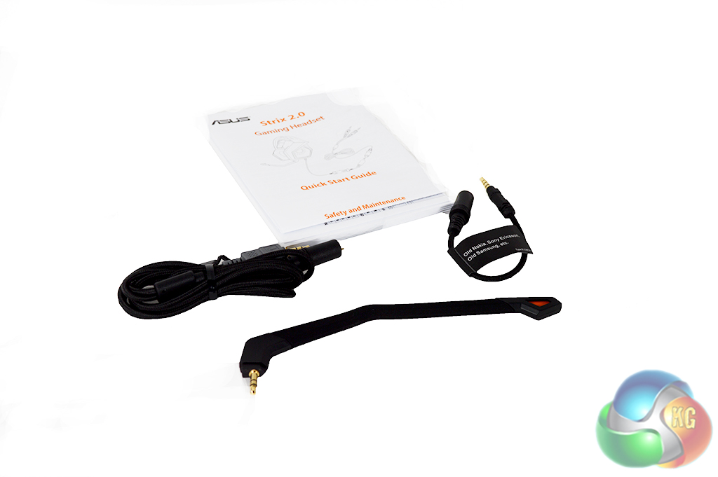 The Asus STRIX 2.0 also ships with a few extra bits, a manual, two adapters for cross-platform compatibility and a boon microphone.