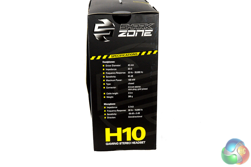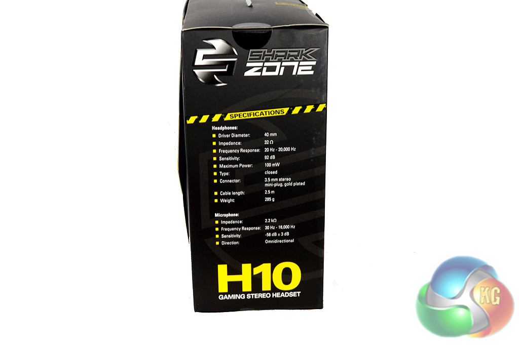 The Sharkoon Shark Zone H10 headset comes in similar packaging to the Shark Zone M20 mouse that we recently reviewed. The front of the box features a magnetic flap, giving you a peek at what is inside, while the side of the box lists all of the key specifications.
