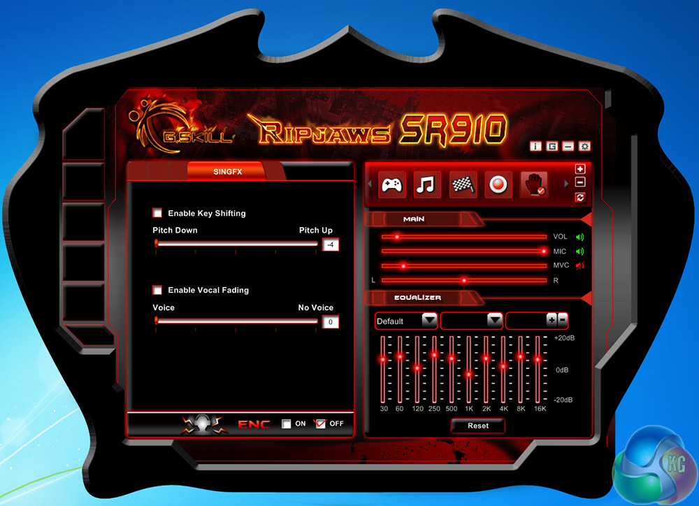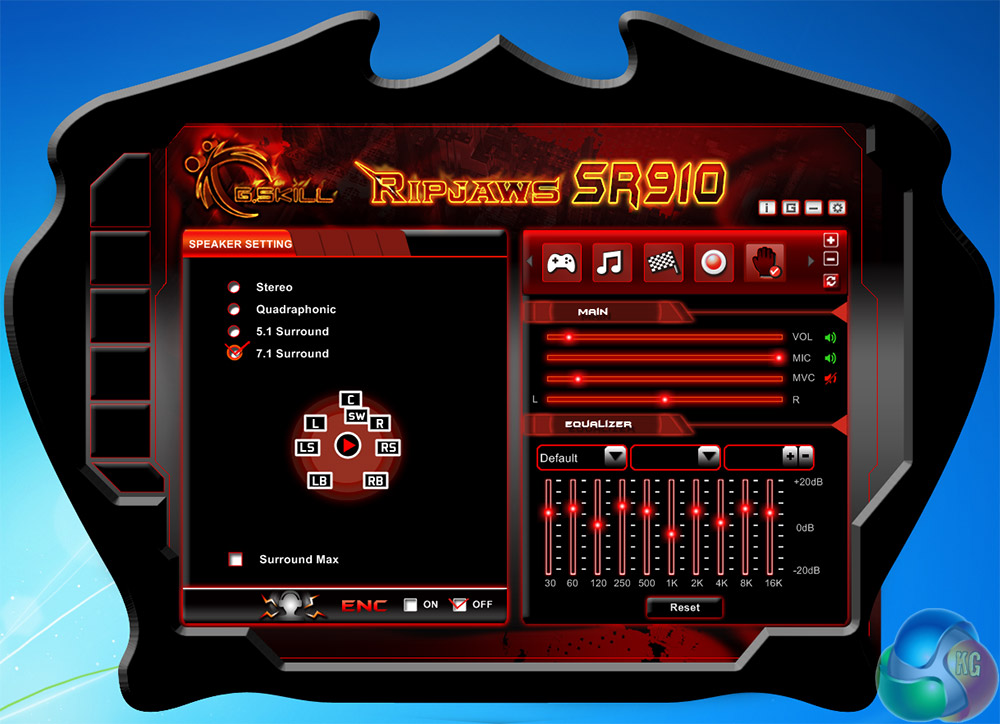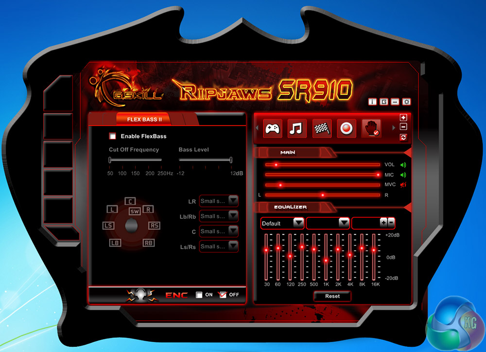 Detailed separation and in particular booming explosions are not so well handled. There is a distinct lack of low level bass from the G.Skill SR910 gaming headset. Although this can be improved somewhat with bass boosting in the back-end software (more on that shortly) there is definitely not a uniform coverage of the frequency range with this headset.