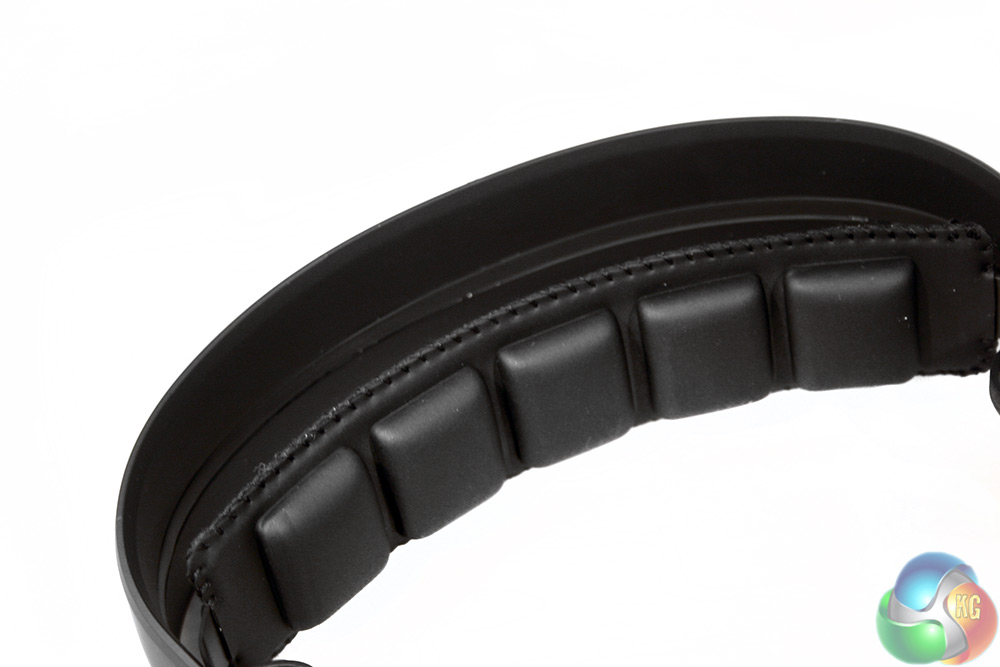 The headband is cushioned quite well, though not to the extent some headsets are. However more interesting is the fact that it is not adjustable, but designed to have give in the plastic portion of the headband. You never actually touch the metallic headband, which while comfortable did give us some issues with keeping it in place when we tested the same design on the SR910.