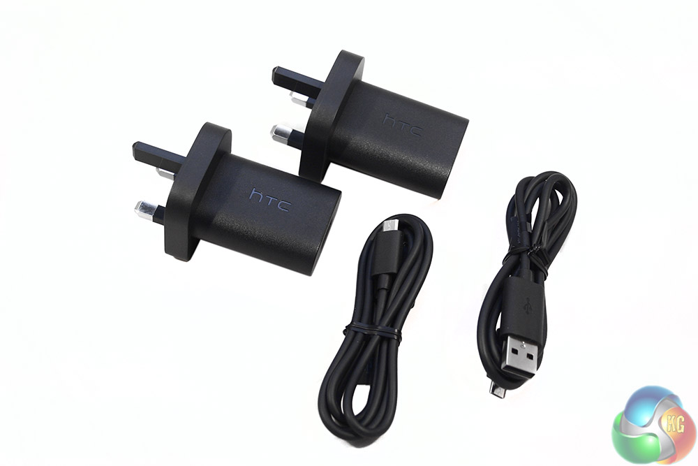 The only accessories that come with the Vive wand controllers are a pair of USB chargers with micro-USB to USB cables. These are for charging the controllers or connecting them up to your PC for firmware updates.