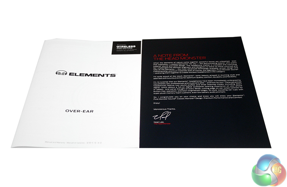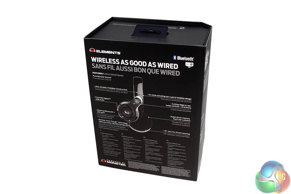 The packaging for the Monster Elements is simple, but effective. The box has a unique shape which folds open to give you access to the interior – of course locking itself up with a magnetic lid.