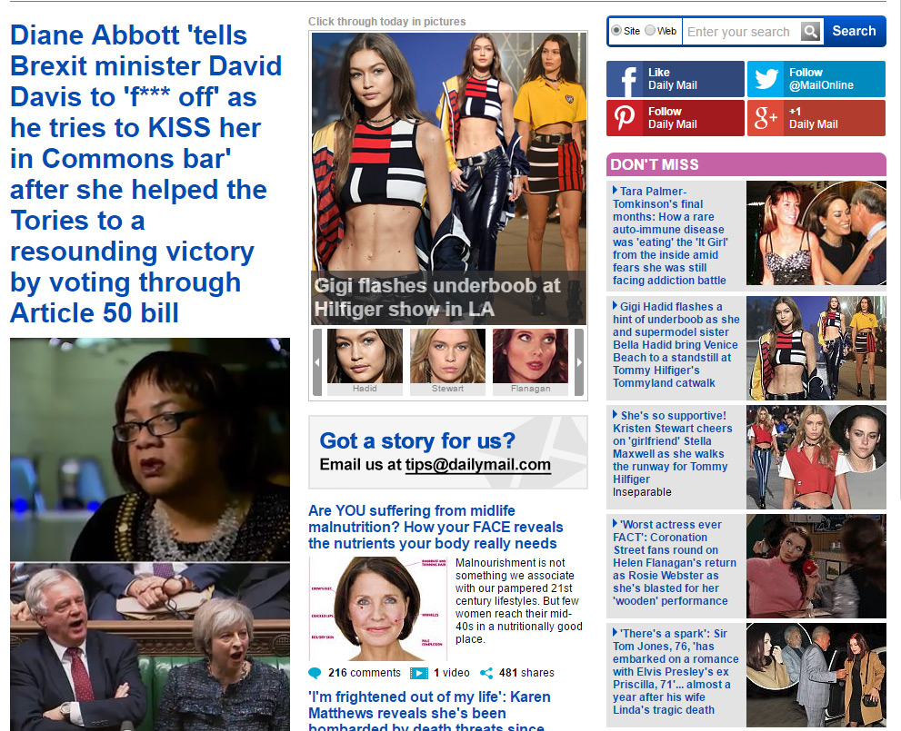 The Mail is known for its sensationalism and salacious content. Source: Today's DailyMail.co.uk