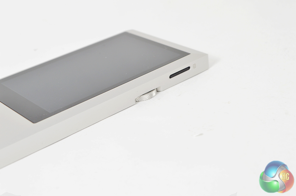 There are no buttons on the surface of the device, instead those have been pushed off to the edges. On the left hand side you will find pause, skip forward and skip backward buttons, while on the right you will find the micro SD Card slot and the volume control wheel.