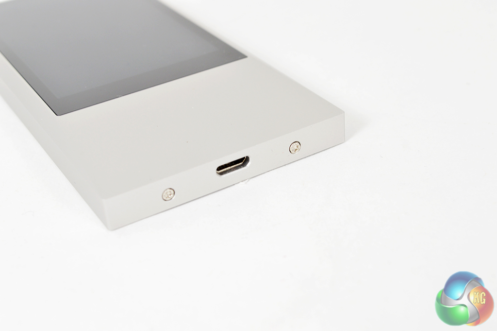On top there is a power button and a headphone jack, while on the bottom there is the micro USB for charging.