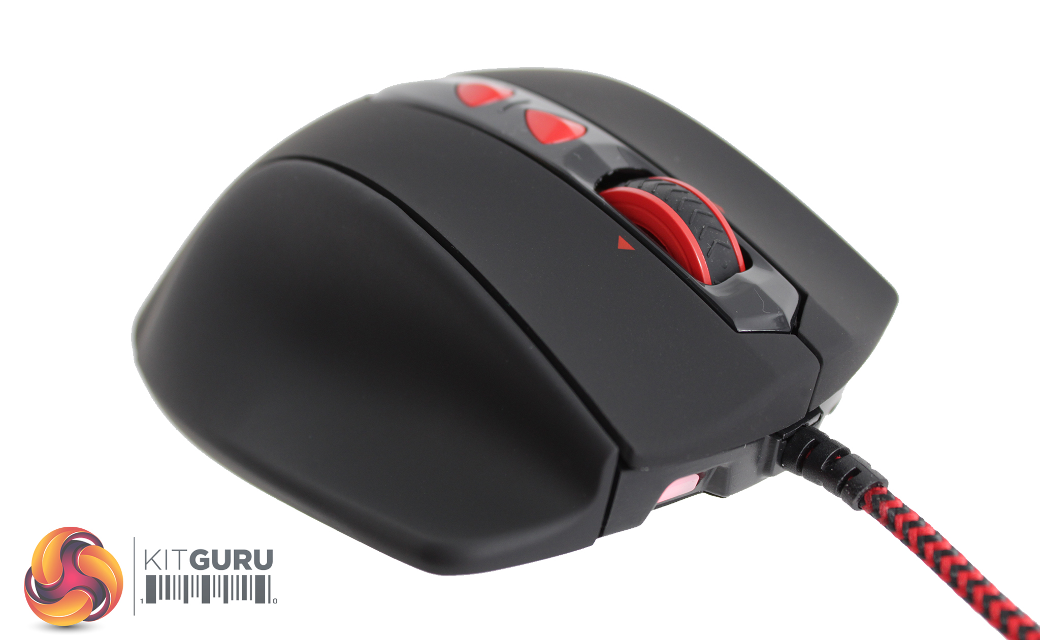 A top-down view of the V560 shows its clean design, with the back and forward buttons hidden within a concave on the left side. To the top left of the mouse sits an LED indicator, showing the current DPI setting via white LEDs and profile, which is represented by the RGB dot. Of course, the Viper snake head logo is emblazoned in red in the lower right portion of the mouse.