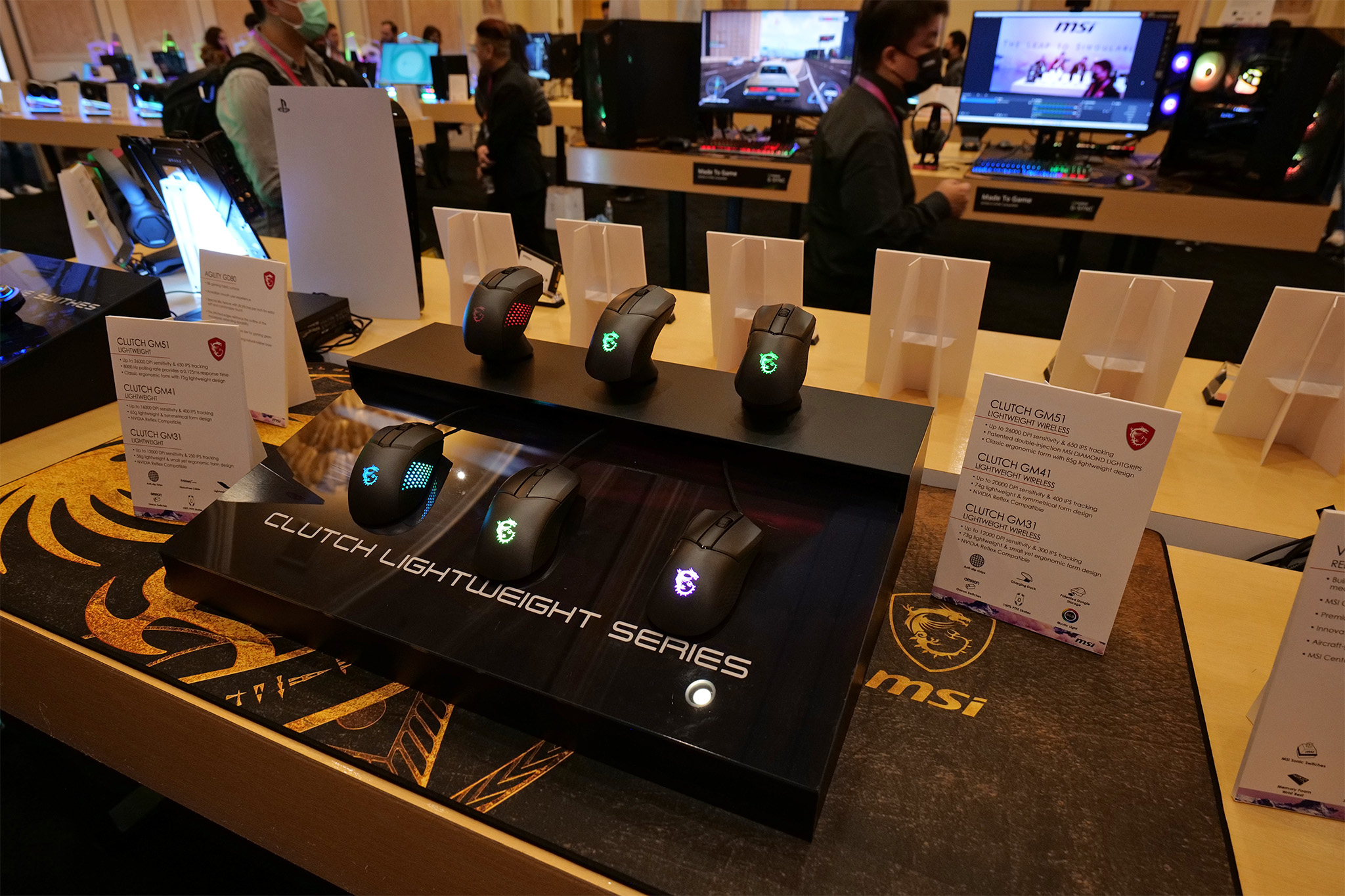 Next the chaps took a look at some new peripherals, starting with the Vigor GK71 Sonic. This offers MSI's own-brand switches, with a choice of Red or Blue variants, and these look to be lower-cost than Cherry MX while offering a similar feel and 45g actuation. We also got a look at the GM51 Clutch Wireless, offering an 85g weight and textured grips known as ‘MSI Diamond Lightgrips'.