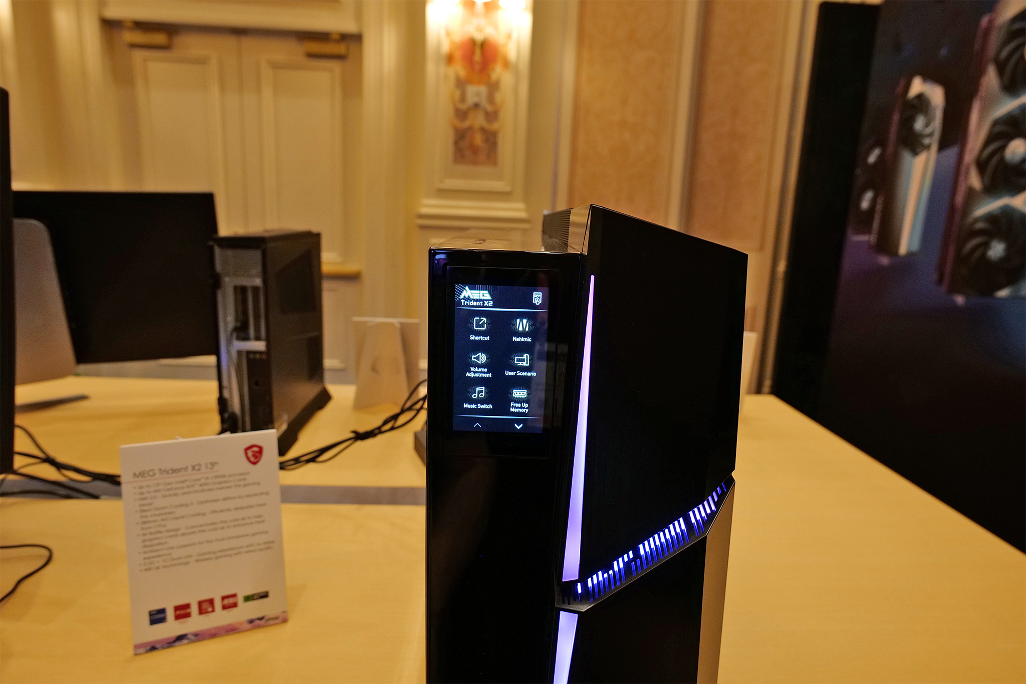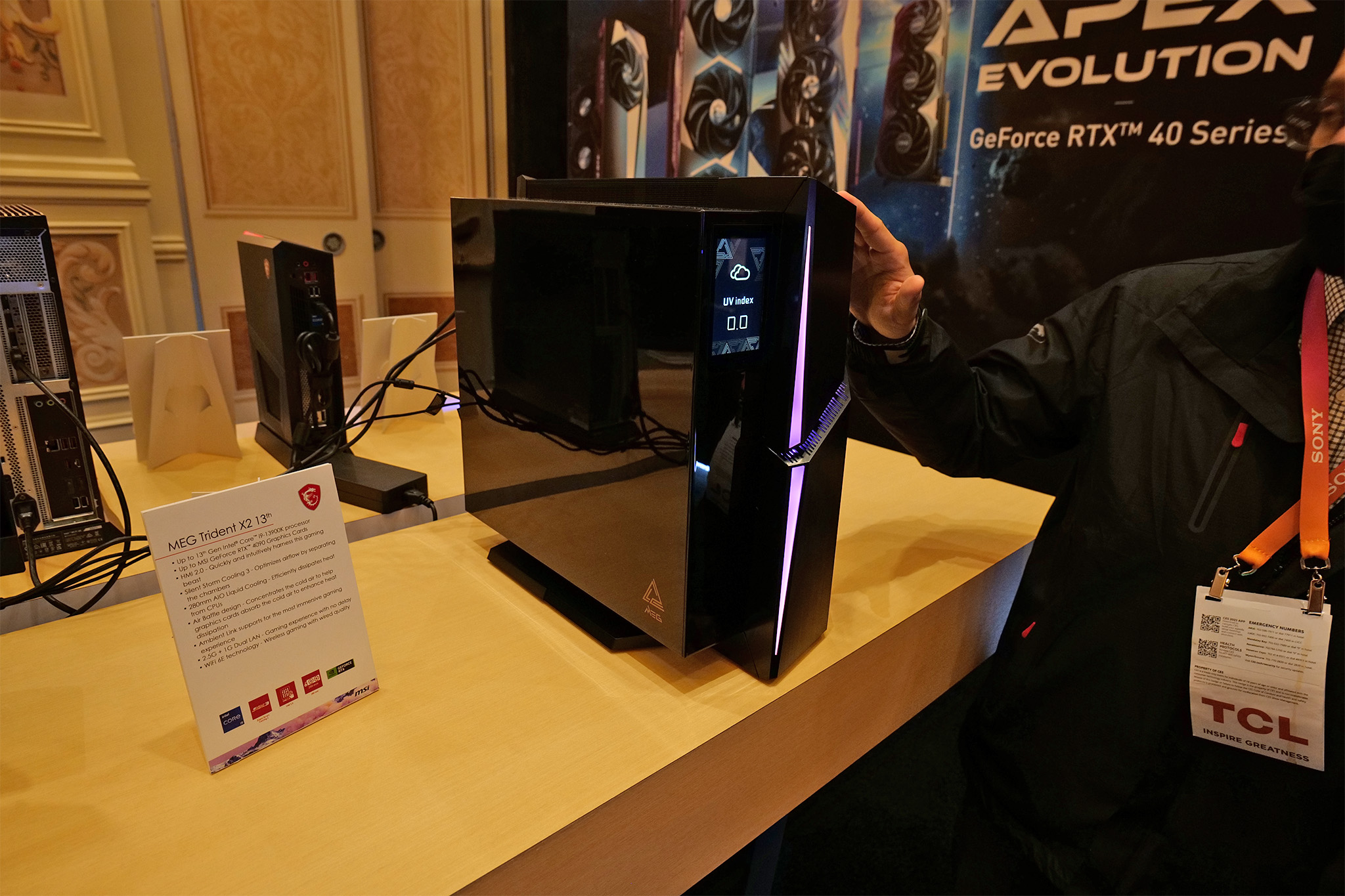 If you're in the market for a prebuilt gaming PC, MSI's MEG Trident X2 13th may appeal. The name suggests it uses Intel 13th Gen CPUs, specifically the 13900K, while it uses an inverted RTX 4090 graphics card that intakes air from the roof. The front panel is even home to a built-in touch screen that can be configured to control various PC functions to display system metrics such as temperature.