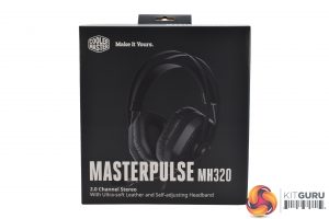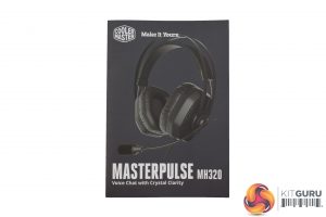 The Cooler Master MasterPulse MH320 ships in a well-sized black box with a large product photo positioned on the front.