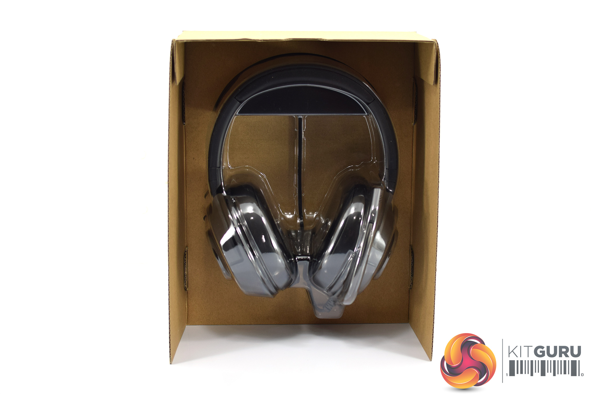 Opening up the box, we can see that the headset sits within a cardboard frame, with a plastic mould to keep it in place.