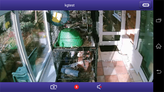 Clicking or tapping on the camera itself, brings up the live feed, with options for still images to be taken directly to your device, or you can record video which is automatically downloaded.