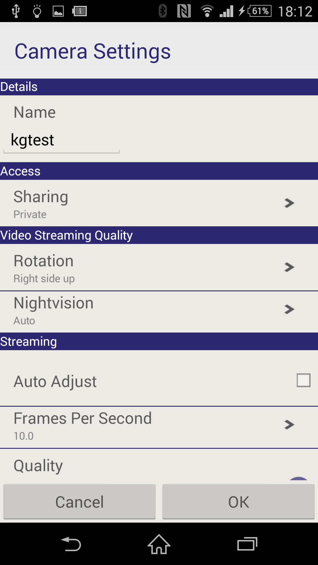In the options menu you will find an array of different settings you can play around with, like resolution, frame rate, whether you want notification when the motion sensors are triggered and if you want an email to be sent in such an event.