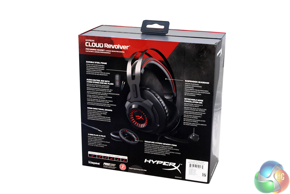 The Hyper X Cloud Revolver packaging is nice and compact and could easily be used as a carry case – since this does not come with one – if needed. It features a good break down of the features on the front and back, as well as a couple of large pictures of the headset so you have a pretty good idea of what you are getting.