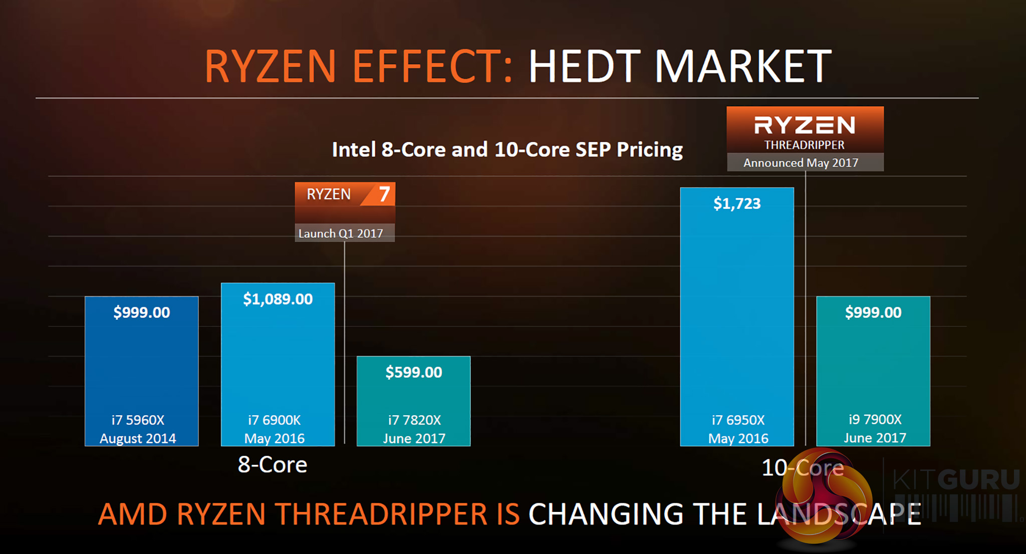> “Essentially we’re talking about Ryzen 7 at a premium of US$50, however that small amount of money gets you 64 lanes of PCI Express and quad channel DDR4.”.