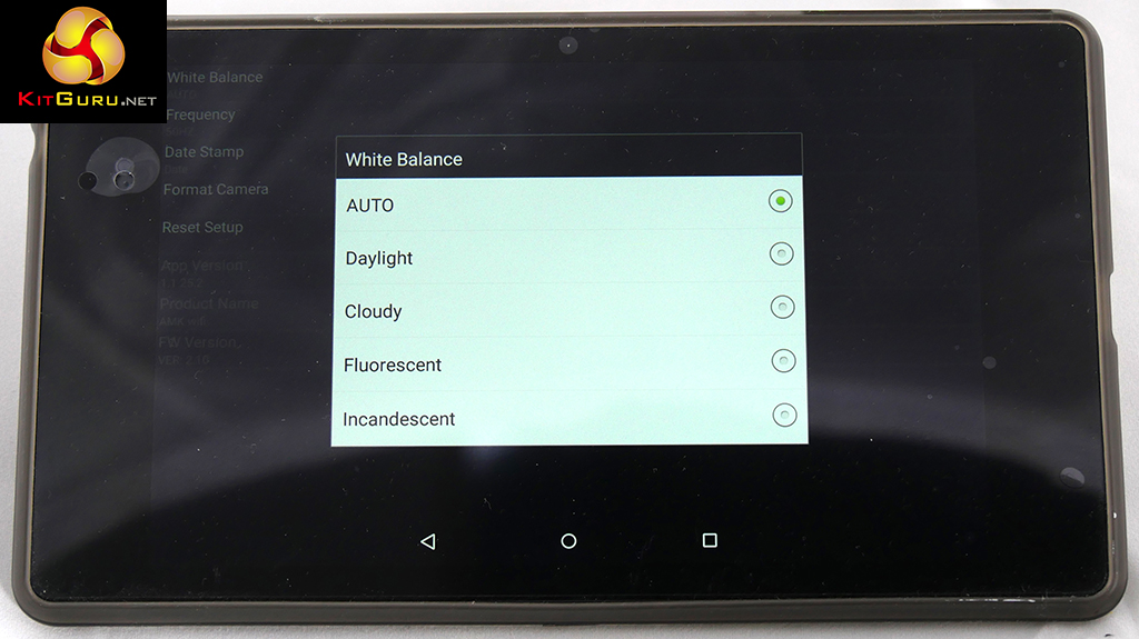 The photos and video should make it clear that you will spend very little time messing around with settings in the Amkov. You are obliged to install an app called AMK-icam on your phone or tablet in order that you can connect using the Wi-Fi on the cam. This is a quick process so you can verify settings as there are not too many things you might consider changing.