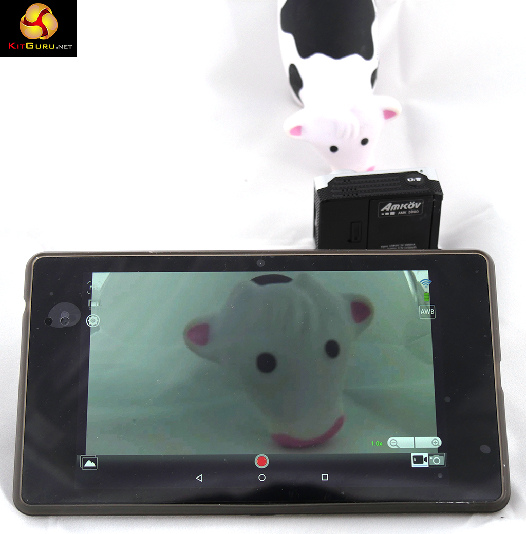 Basically you select photo or video, confirm the video is recording at 1080p rather than 720p, leave White Balance on Auto and decide whether you want to shoot a video clip of a pre-set limit or to keep recording until you press the button again. You might expect to be able to change the Field Of View or to adjust the microphone level but this isn't an option with the Amkov. You can, however, adjust the digital zoom but this is a bad idea as the results look very poor.