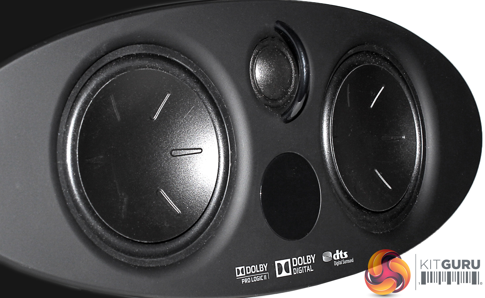 The front mounted OLED is situated just under the tweeter on the central speaker. It has a basic, blue look and feel – reminiscent of an early generation digital alarm clock. The advantage of having a screen on your speakers is that you can see that they’re working (and in which mode), without having to refer to a computer screen.
