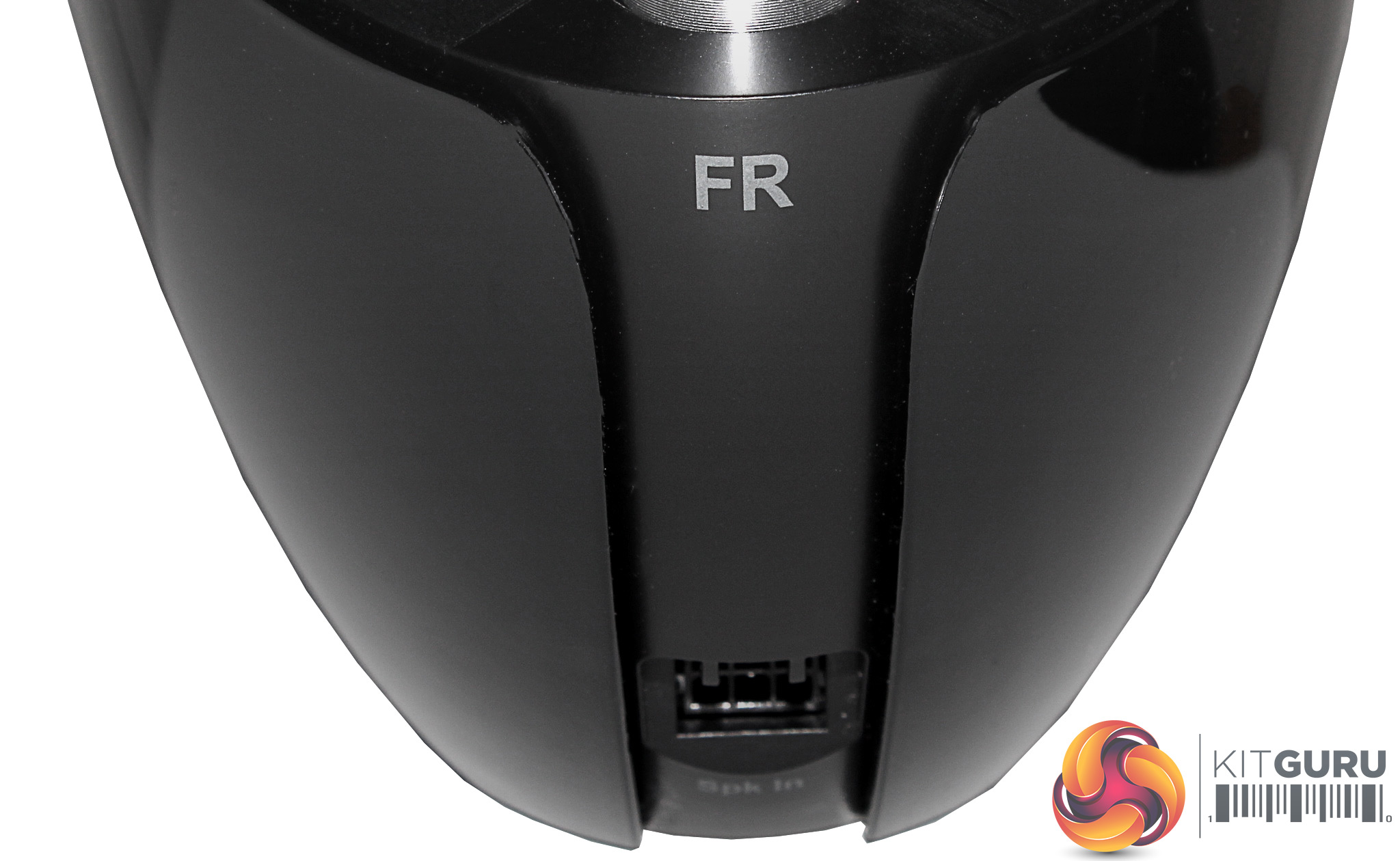 Alongside the hefty subwoofer (we placed a household plug on the base – to give you a sense of the scale) and clever central speaker unit (detail shots shows its Dolby credentials), you essentially get 4 speakers that are nearly the same, except that the FR/FL have a cabled data connection, while the SR/SL have wireless connectivity.