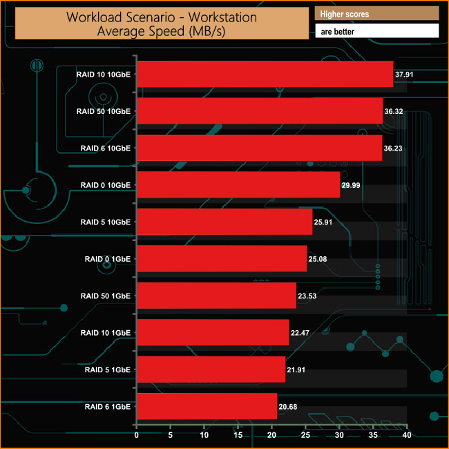 In the Workstation workload tests, the 10GbE connection has the edge but only just.