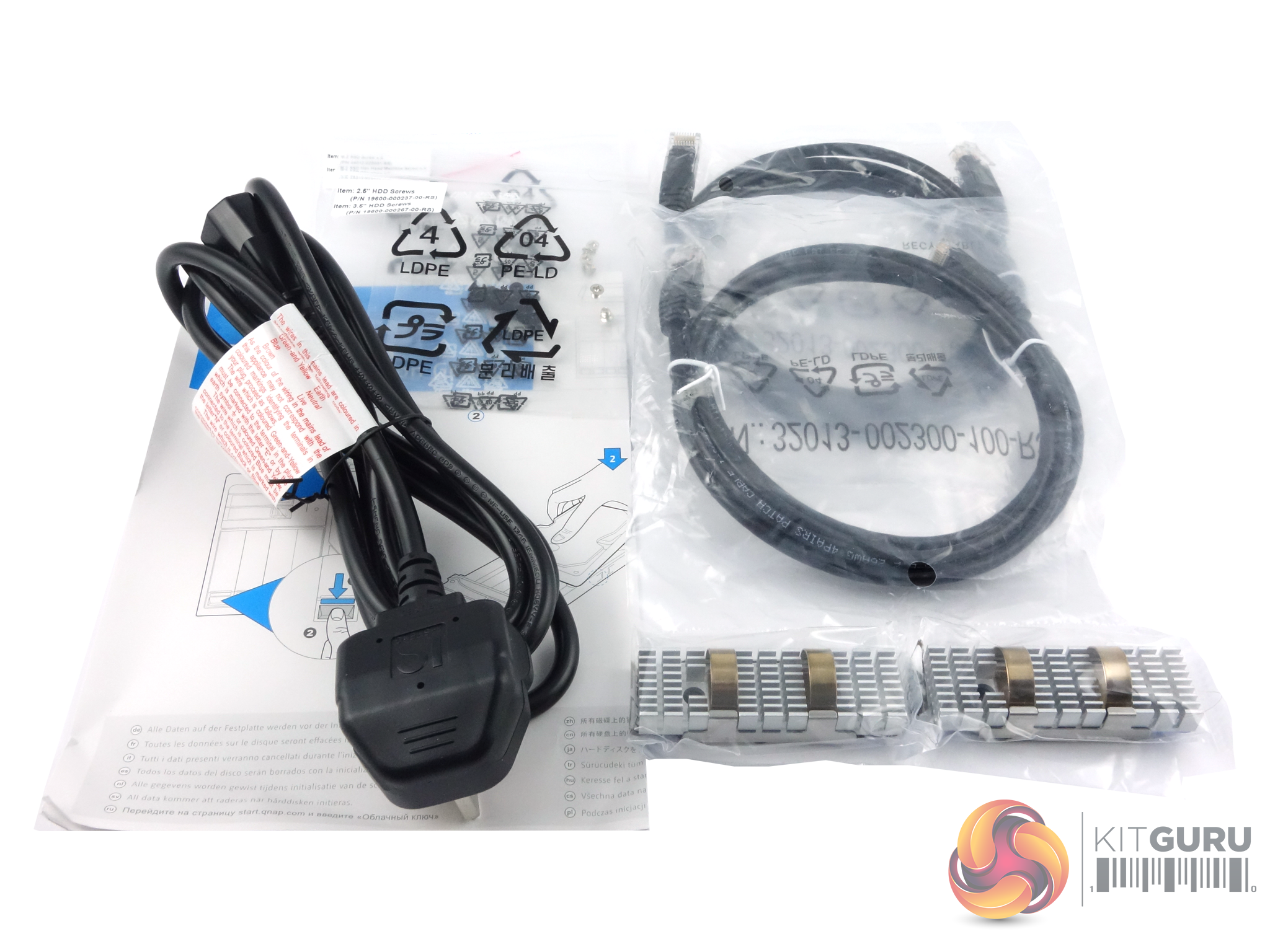 The box bundle for the TS-877 is pretty comprehensive. There's a quick installation guide, a pair of Ethernet cables, fixing screws for the main 3.5in drive bays should you feel that the tool free system doesn't hold the drives firmly enough; we think it does but including fixing screws gives you that extra peace of mind.