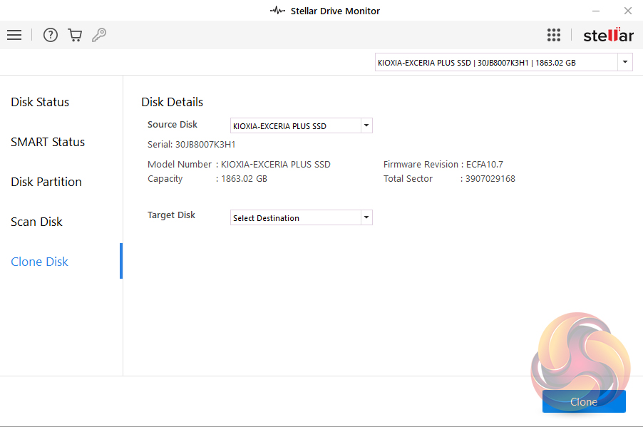 As well as all the data recovery options the software also supports a useful drive monitor. This monitors disk temperature, performance, and health and will send real-time alerts if a problem arises. It also supports disk cloning.