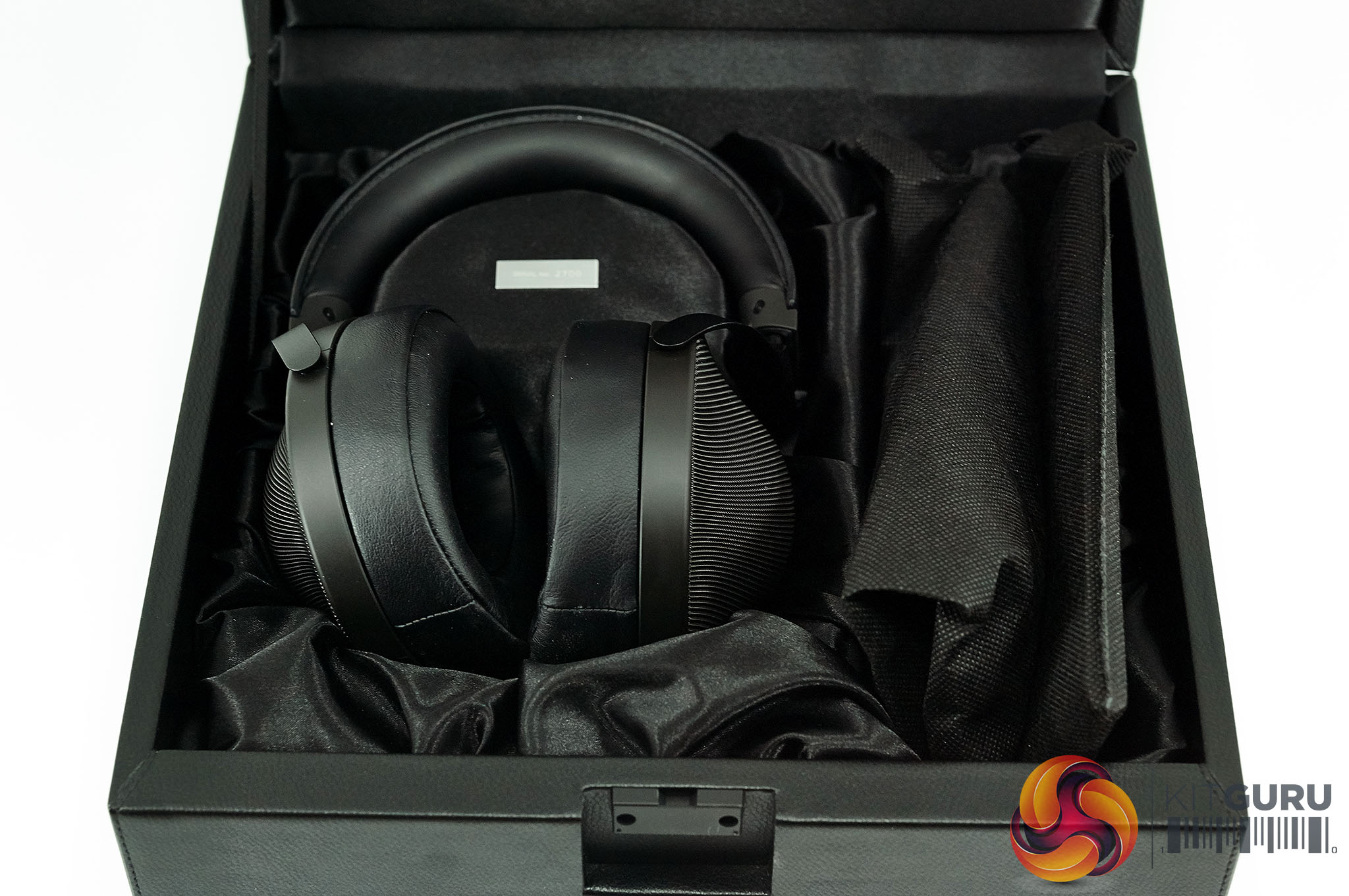 The headphone presentation is lush. The headphones are protected inside a moulded section covered in a shiny soft material.