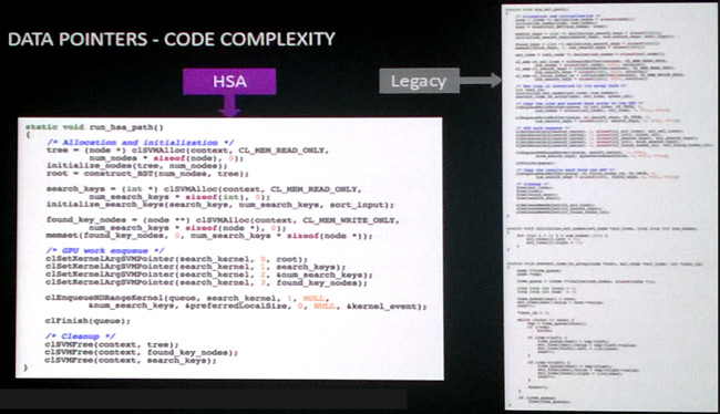 “When you're dealing with Data Pointers, for example”, said Nic. “The fact that the GPU and CPU can access memory without copy overhead means the code’s complexity is considerably reduced. You can find many instances where the HSA version of a section of OpenCL 2.0 code will be significantly smaller than the legacy code. It's smaller, more efficient and, overall, more intuitive to write for developers”.