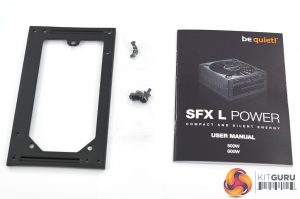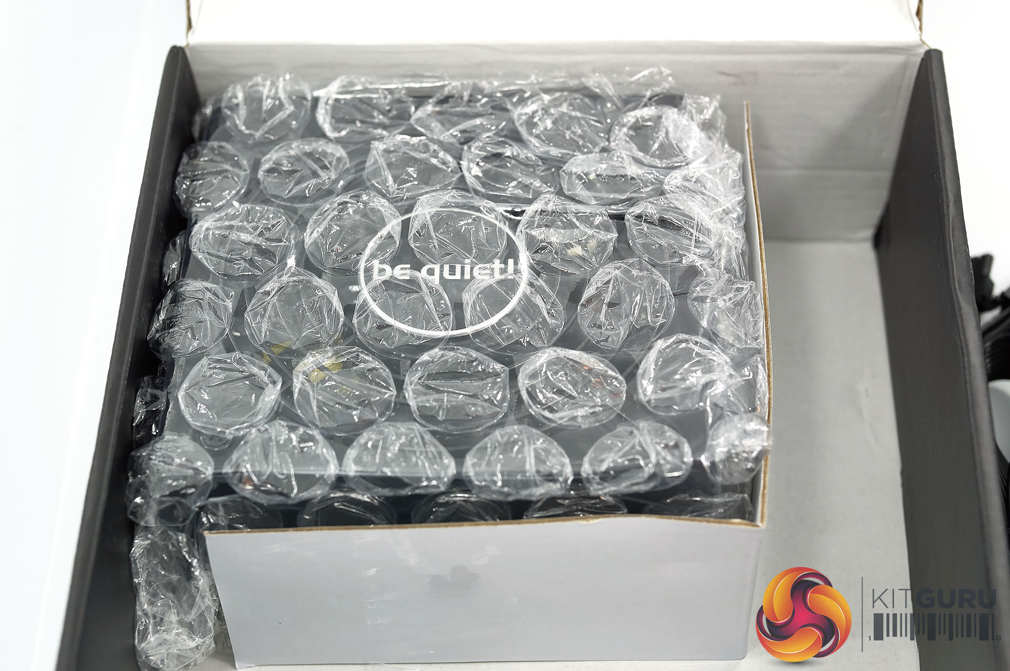The power supply is protected inside a bubble wrap bag with only pieces of cardboard on the inner edges. Not the best packaging we have seen – I would expect more from be quiet! to be perfectly honest.