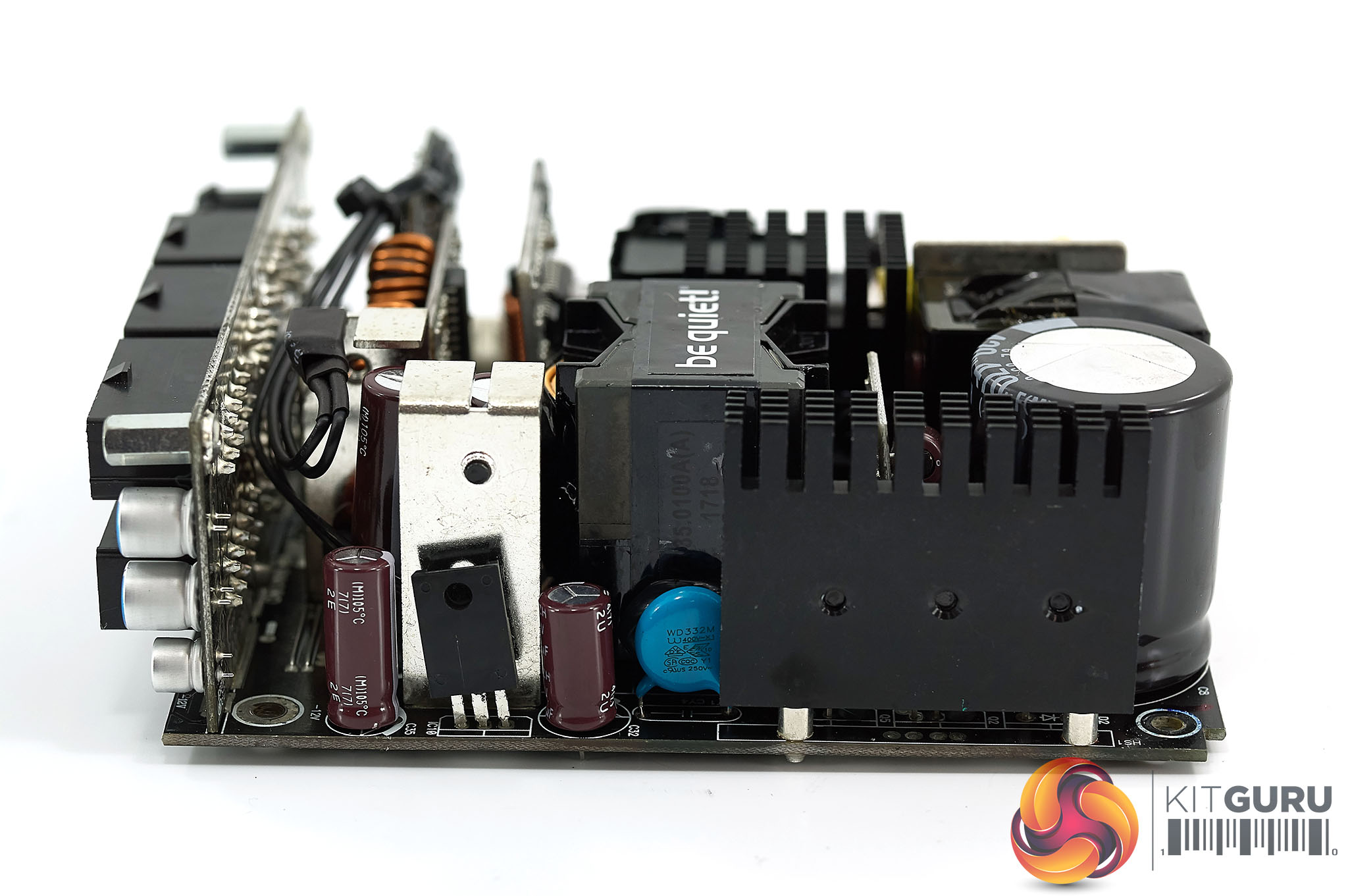 The High Power design utilises DC to DC converters to generate the +3.3V and +5V rails from the +12V rail. I was happy to see that unlike some of the be quiet! designs, they are using Japanese capacitors (Rubycon and Nippon Chemi Con) in the primary and secondary stages. The main primary Rubycon capacitor is 85C rated, not 105C. Not a huge deal really as Rubycon make great caps, but worth noting.